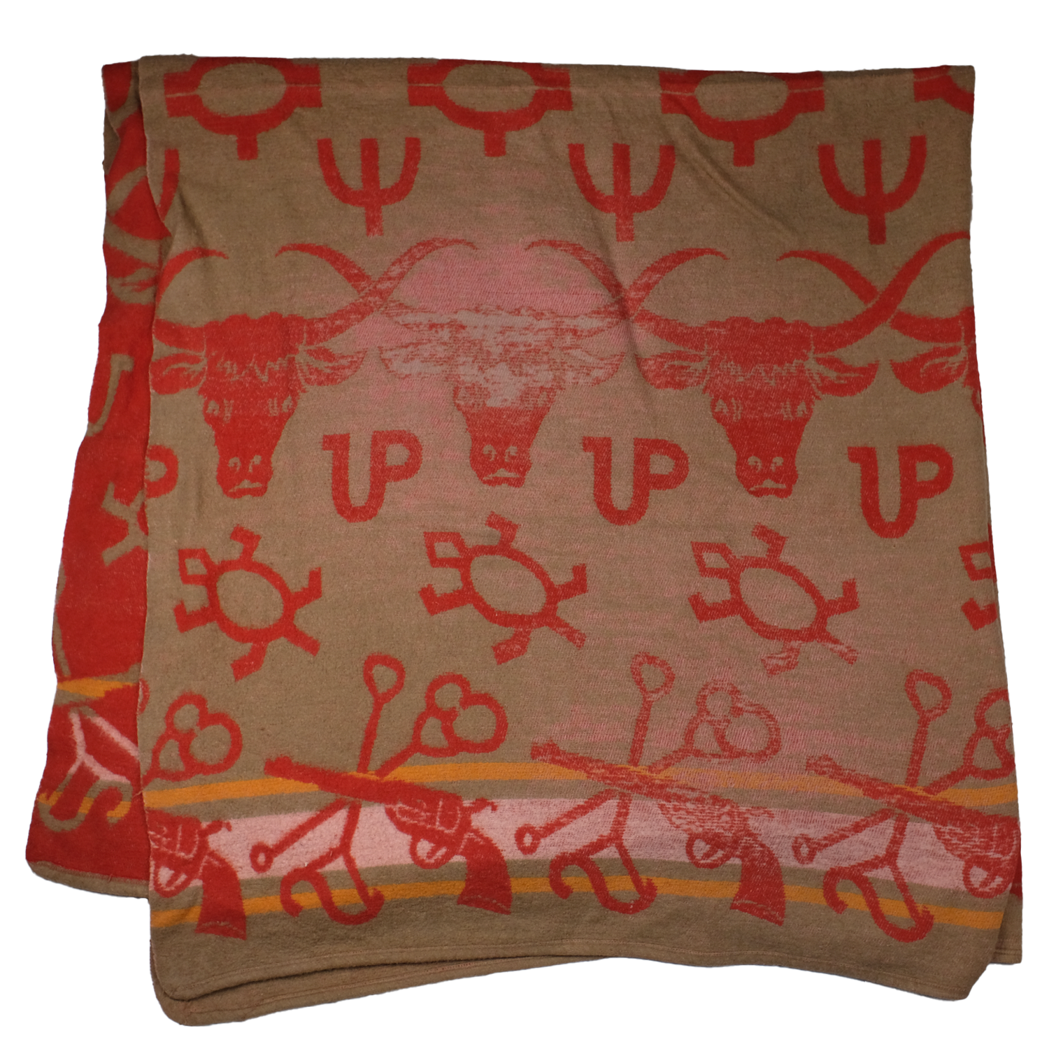 Guns, Bulls & Branding Irons. This 1950s camp blanket ticks all the boxes in Americana!