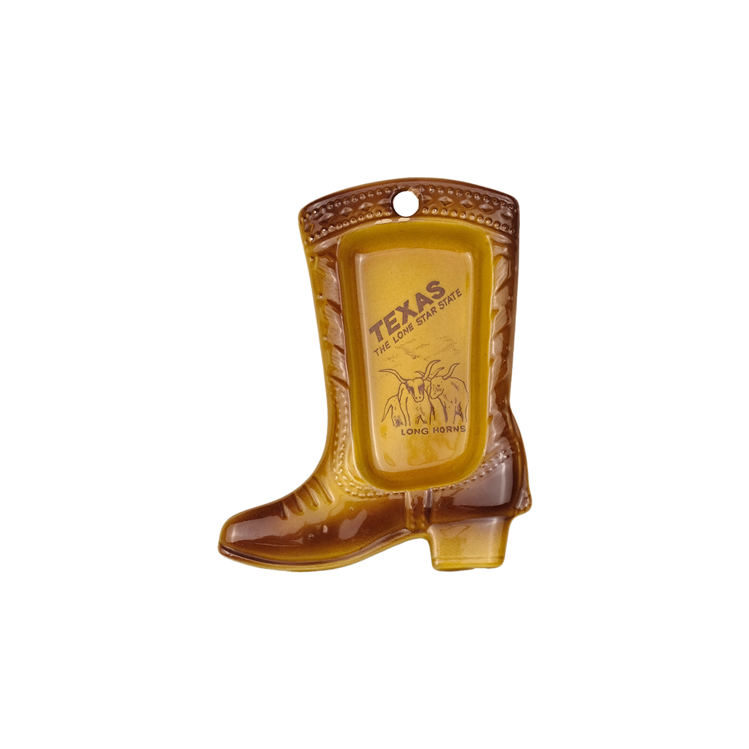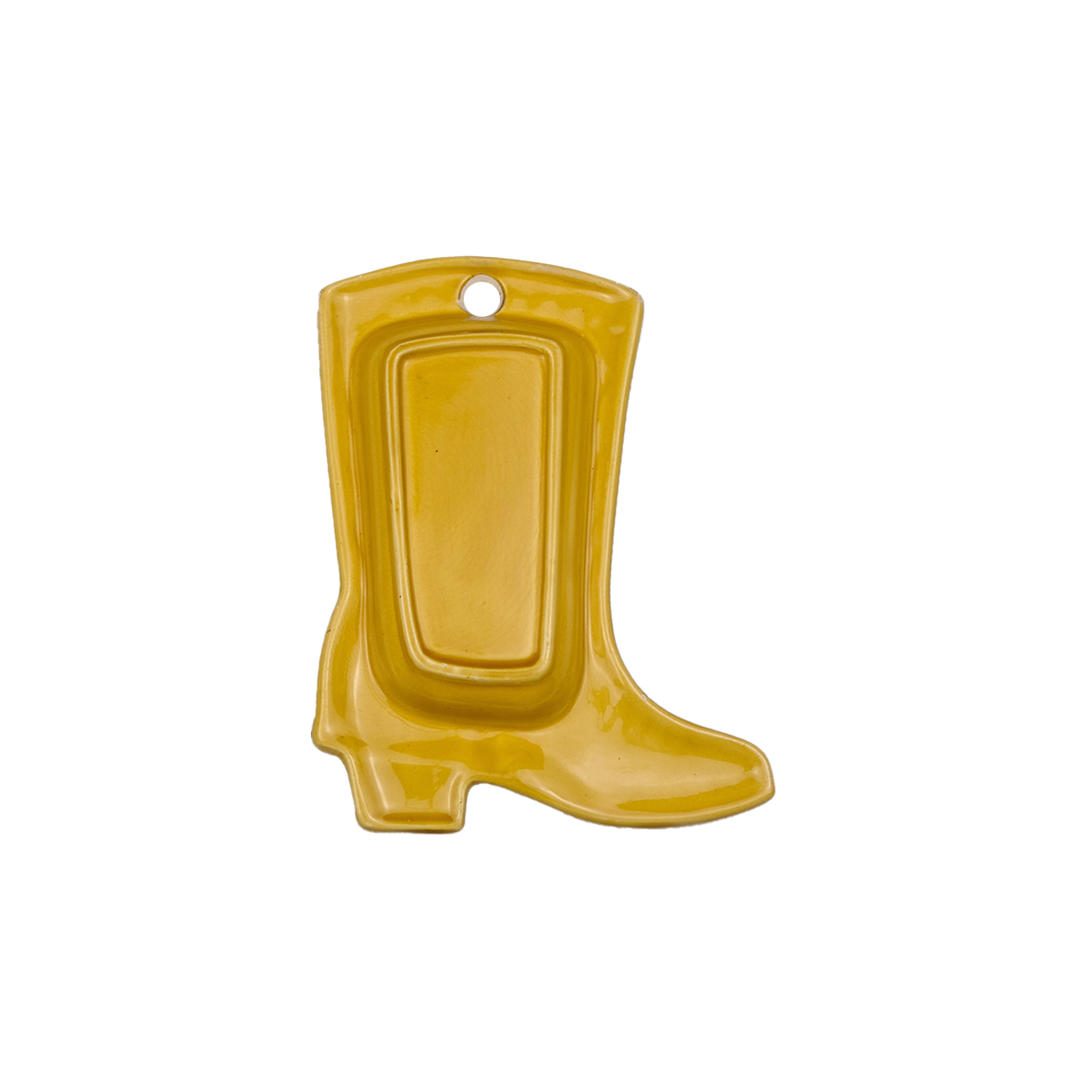 A ceramic ring dish shaped like a cowboy boot, use it for rings, burning incense or stubbing out your cigarettes in. If none of that tickles your pickle, you can always hang it above your bed.