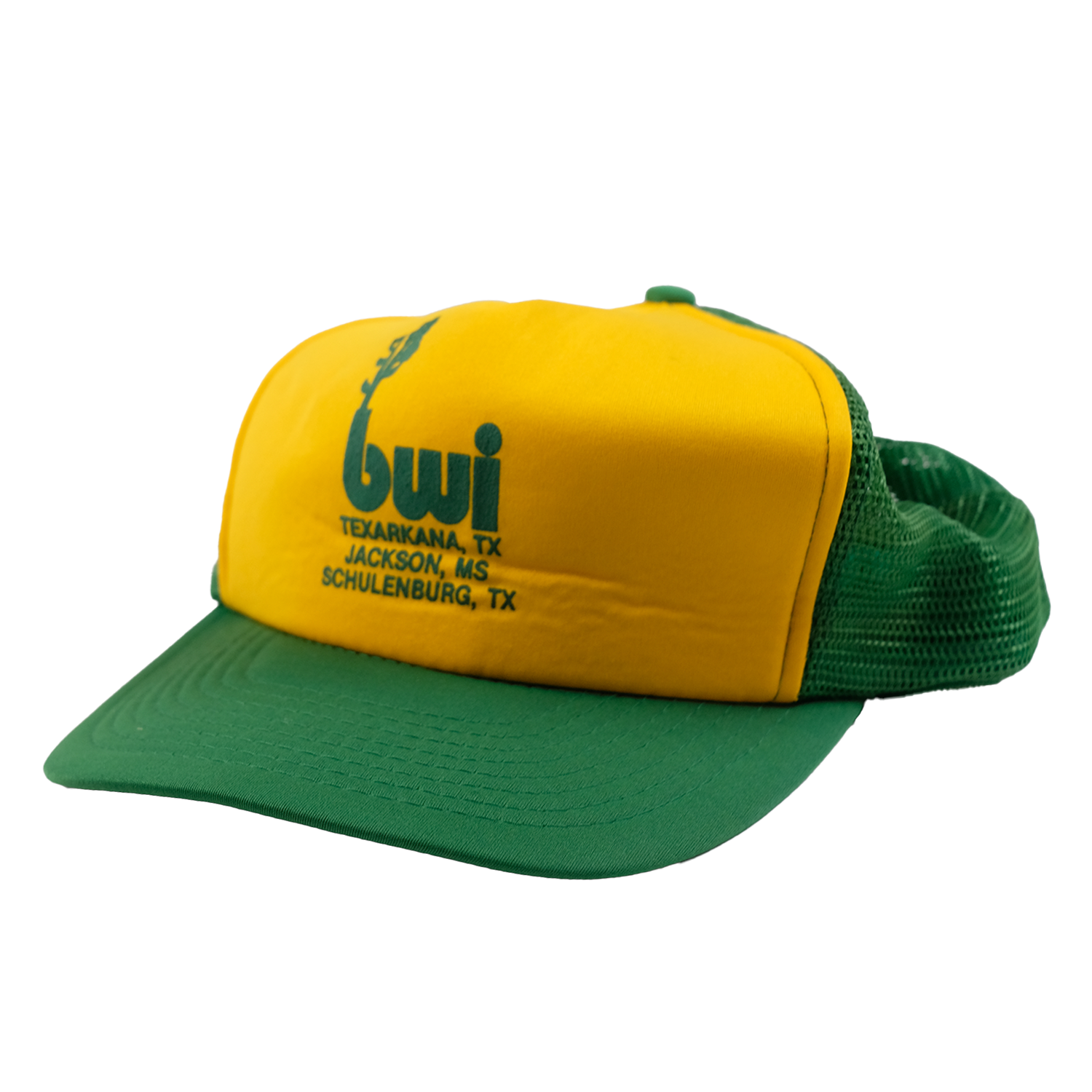 Each cap in this collection hails from a different era and industry — weathered logos from long-gone feed stores, faded and snapped stitching from Texan oil companies that fuelled the West, and beer brands that fuelled the weekend. Every scuff, stain, and sun-faded panel tells a story — and now, it’s yours to wear.